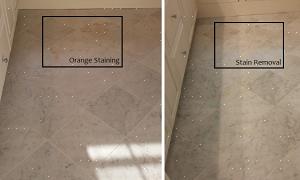 Marmor har en pH på basesiden (alkalisk) på grund af dets oprindelse som en sedimentær kalksten. Dette betyder, at det kan have en kemisk reaktion, når det kommer i kontakt med sure stoffer. Dette kan omfatte en lang række fødevarer, saucer, drikkevarer og rengøringsprodukter. Desværre er misfarvningspletterne fra disse materialer normalt permanente. Dette kan forhindres ved at anvende en kemisk gennemtrængende forsegler samt en overfladeforsegler efter installationen. Men for optimal beskyttelse skal overfladeforsegleren påføres igen årligt.