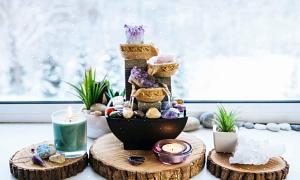 - Passende kunst: Billeder af forskellige landskaber, jord, keramik samt billeder af ild. Billeder af Buddha eller andre guddomme, en lotusblomst eller andre billeder, der fremkalder en åndelig energikvalitet.