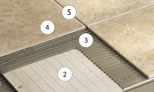 Til installation af fliser er det bedst at tørfaste og forskære alle bundfliserne, inden du klæber fliseklæbemidlet, som har en levetid på 45 minutter. Klæbemidlet påføres med en hakket murske, og fliserne lægges som standard. Derefter er væggene flisebelagt op fra bunden. Efter at klæbemidlet hærder på brusebad og væg, bliver alle fliser fuget som med standard fliseinstallation.