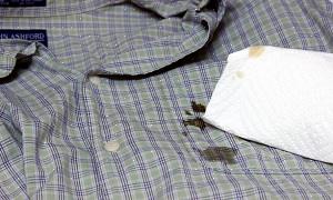 Hvis tøjet kun er renseri, skal du tage det til din yndlings tryllekunstner og pege pletten ud. Hvis stoffet kan vaskes i maskine, er der et par ting, du kan prøve. Forbehandl først pletten med dit foretrukne flydende vaskemiddel. Mange af de bedste flydende vaskemidler har enzymer, der begynder at nedbryde proteinerne i pletten. Skyl tøjet helt og blød derefter tøjet i varmt vand og en blegemiddel af alt stof. Lad dette suge i en time. Skyl tøjet helt. Gentag, indtil der ikke er nogen pletter tilbage.