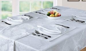 Selvom en hvid linneduge ikke er afgørende for en formel middagsselskab, kan du ikke gå galt med en. Elegansen af en stivet hvid duge og matchende servietter skaber scenen for dit måltid.