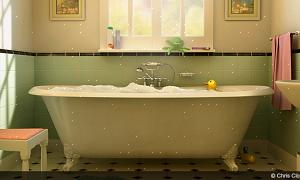 Beslut, hvilken vej der skal strømme farven. Overgang fra mørkt i bunden til lys øverst får loftet til at virke højere og rummet ser større ud. Overgang fra lys i bunden til mørkt øverst kan få et stort rum til at føles hyggeligere. Til denne demonstration vil væggen gå fra mørkest i bunden til lysest øverst.
