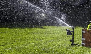 Hvis du ikke kan få dig selv til at give afkald på den skrøbelige type græs, som din hvalp i øjeblikket påfører skade, kan du stadig forhindre urinpletter med opmærksomhed. Når du ser en hund tisse på græsset, skynd dig til haveslangen. Tænd for det, og bring det over til det område, hvor din hund lige har urineret. Brug området med vand, skyl det og fortynd de skadelige elementer i urinen.